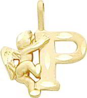 --> Details : 14K Gold Angel Diamond Cut Initial P Charm