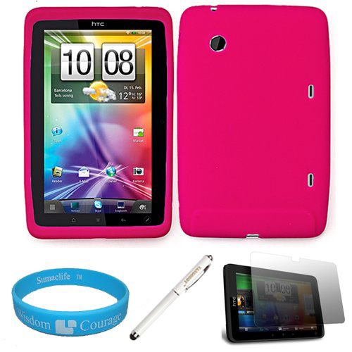 --> Hot Pink Premium Soft Silicone Skin Cover for HTC Flyer Tablet also compatible with Sprint HTC EVO View 4G Android Tablet + Scratch Guard Clear Screen Protector +Executive White Stylus Pen with Laser Pointer and LED Light + SumacLife TM Wisdom*Courage Wristband - - Review by Noah