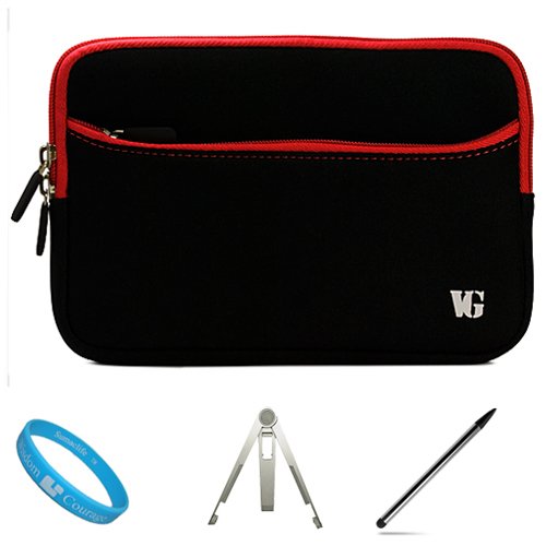 --> Red Trim Neoprene Protective Sleeve Carrying Case Cover for Blackberry Playbook 7-inch Tablet Compatible with all Models (16GB, 32GB, 64GB) + Silver Color Dual Tip Aluminum Stylus Pen + Silver Color Metal Stand for Wireless Tablet + SumacLife TM Wisdom Courage Wristband - - Review by Christopher