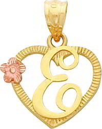 --> Details : 14K Two Tone Gold Initial E Heart Charm