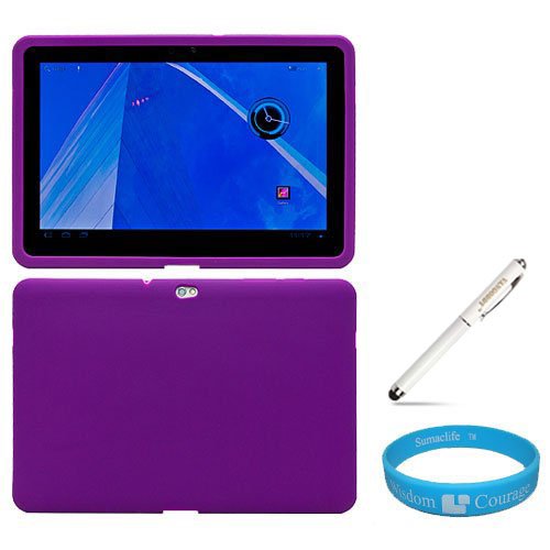 --> Purple Silicone Skin Cover for Samsung Galaxy Tab 10.1-inch Tablet fits all Model (16gb, 32GB) + Executive White Stylus Pen with Laser Pointer and LED Light+ SumacLife TM Wisdom Courage Wristband - - Review by Christen